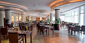 Открытый целый день ресторан предлагает широкий ассортимент вкусных и изящно оформленных блюд международной кухни. Можно выбрать блюдо шведского стола или по меню наших демонстрационных кухонь.